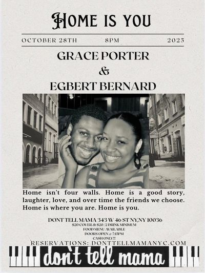Egbert writes all of his scripts. Home Is You marks the first two person show he has written. For this show, Egbert will be joined on stage by Grace Porter. Grace is known for her stint as Betty Shabazz on the hit tv series Godfather of Harlem. Grace recently made her Broadway debut in Death of a Salesman starring along side Wendell Pierce. You can find more about Grace Porter @gracelandsworld